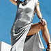 # 13 Gelbes Kleid mit grauen Musterstreifen