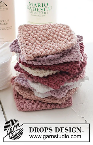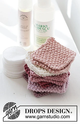 Knitted make-up pad in DROPS Paris. The piece is worked back and forth in moss stitch.