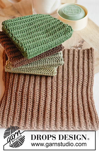 Crocheted cloths in DROPS Safran. Piece is crocheted back and forth with horizontal lines with half treble crochets. Theme: Christmas.