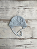 Along the front edge, a neat casing is worked and finished with an I-cord tie threaded through it, allowing the bonnet to be gently secured under the chin. This thoughtful detail ensures both comfort and adjustability, making the bonnet practical as well as adorable. A sweet and timeless accessory, perfect for keeping little heads warm and adding a touch of texture to any outfit.