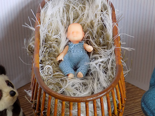 I designed and knitted this tiny baby outfit to fit the new born baby 3D printed doll by Teeny Tiny Things.