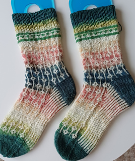 Knitted socks with two-coloured pattern in DROPS Fabel. Sizes 35 - 43.