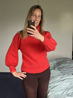 Knitted jumper in 2 strands DROPS Kid-Silk. The piece is worked top down, with saddle shoulders, puffed sleeves and high neck. Sizes S - XXXL.; Pattern no ks-182