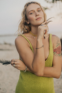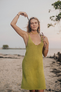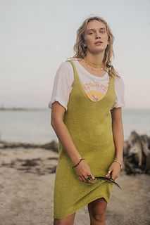 Work dress from hem up in Line. Dress is slightly A-shaped. Work from hem up with small ribbing for edging and cont in St-st. Divide work at underarms, cont back and front separately and divide for v-neck.