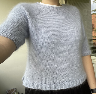 Knitted jumper in DROPS Flora and DROPS Kid-Silk. The piece is worked top down in stocking stitch with raglan and short sleeves. Sizes S - XXXL.