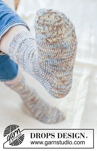Knitted socks for men in DROPS Fiesta. Piece is knitted top down with rib and diamond heel. Size 38 - 46