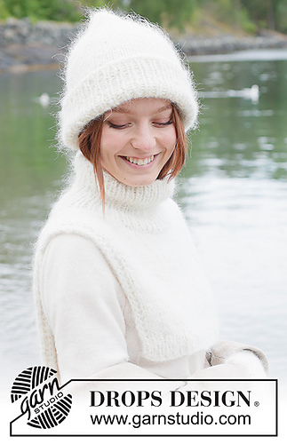 Knitted neck-warmer and hat in DROPS Melody and DROPS Puna. The piece is worked in rib and stocking stitch.