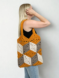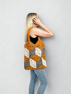 This 3D Cube Bag has a fun illusion effect that creates an optical illusion. It is made from diamond motifs in three colors. The pattern includes step by step instructions and a video tutorial to help you join the motifs and the handles.