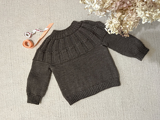 Knitted jumper for baby in DROPS Sky. The piece is worked top down, with round yoke and ribbing on the yoke. Sizes: Premature to 2 years.