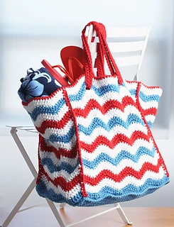 Patriotic colors are striped in a ripple pattern in this bag that’s large enough to hold your beach accessories. (Yarnspirations)