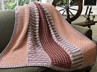 Snuggle up under this cozy full-sized 5-panel blanket. Each panel teaches you a different stitch pattern. Accompanying videos show you tips and tricks for best results. Pick four colors of Plymouth Encore to match your decor, and let’s start crocheting!
