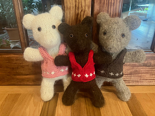 This is a vest for Harry Bear, the wonderful pattern from Berroco (https://www.ravelry.com/patterns/library/harry-bear). The pattern will make two sizes by changing yarn and needle size.