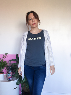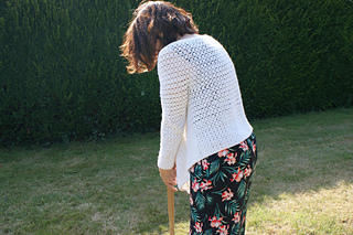 The garment pictured (size S) used 7 balls of Drops flora but any suitable lightweight yarn which meets gauge should work. Further advice on yarn substitution is given in the pattern.