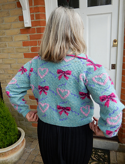 Instructions are given for either a ribbed or loose hem and this has an impact on the yarn required (see below). In the main pattern photo the pink sweater has the ribbed hem and the white has the loose hem.