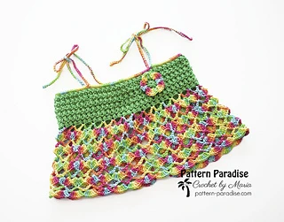 The All Tied Up Top couldn’t be simpler to make and more comfortable to wear. This “baby doll” styled top is designed to grow with your child. The simple ties at the shoulders and tie closure at the back make it easy to get more than one season’s worth of wear. You could even make it dress length and wear it as a pinafore or work the skirt part in the round for a traditional dress. I love patterns that give you multiple options don’t you?