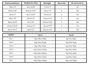 The pattern covers seven head circumferences from toddler to large adult (48cm/ 19” to 63cm/ 24.75”).