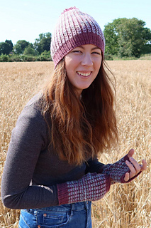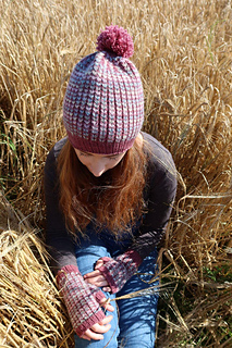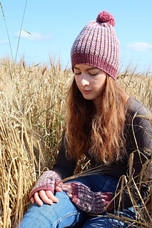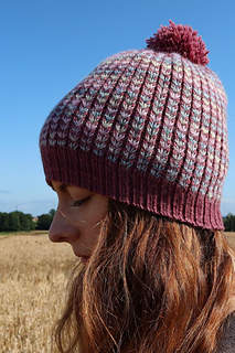 Yarn A - RiverKnits Nene 4ply; 100g/ 400m/ 437yds; 100% British Bluefaced Leicester. Between 34g/ 138m/ 150yds (Size 1) and 82g/ 328m/ 359yds (Size 7). Sample is Size 4 and used 48g/ 193m/ 211yds in shade ‘Brombeer-Zweig’ plus extra for the pompom.