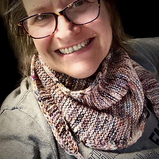 The scarf begins with an I-Cord tip, increases every other right side row to the width of the scarf, then decreases to an I-Cord tip. A slip stitch edge gives a clean finish along all edges. Embellish with tiered tassels and optional Mosaic Cuff.