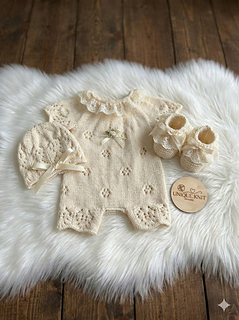 Designed to capture the charm of vintage babywear, this set features a delicate, textured stitch motif that creates a classic, sophisticated look perfect for special occasions or newborn photography.