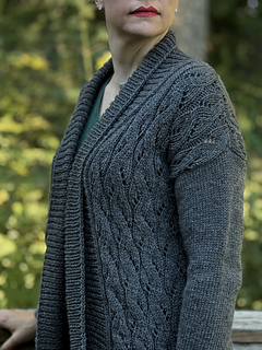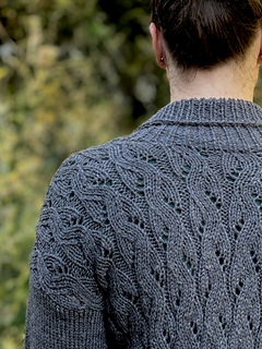 It was this very moment that inspired the Amber Meadow Cardigan. The peaceful rhythm of the tall grass swaying in the breeze is captured in the delicate all-over lace design, a pattern that seems to flow and dance with every movement. The cool whisper of the wind is reflected in the sleeves and collar, worked in a stockinette—a quiet contrast that grounds the piece. Wearing this cardigan is like wrapping yourself in that golden afternoon, a reminder of a beautiful, blissful moment.