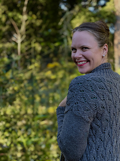 Note: pattern has been redesigned from its original version - seen in mustard yellow. You will get both versions with download. The 2025 version - seen in charcoal - has Stockinette sleeves, I added ribbing to the sleeves and the body, and the collar is now worked in 1x1 rib.