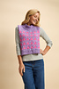 This dickie is worked flat in pieces from the bottom up. After seaming the shoulders, neck stitches are picked up and worked in the round. A narrow garter stitch border runs along the side edges of the piece to prevent curling.