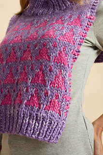 The Amethyst Dickie adds vibrance and whimsy to your wardrobe in the form of a vivid pop of color peeking out from your favorite layering piece! With an easy geometric slip-stitch pattern knit in our bulky-weight Maman yarn, you’ll have a cozy new accessory to show off in no time!