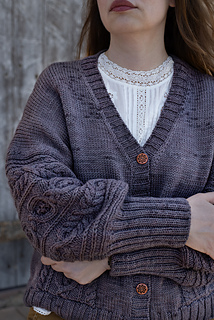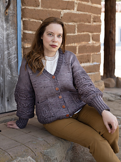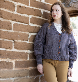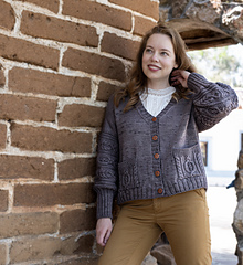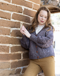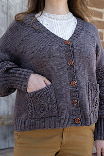 The Annemarie Cardigan is a modern classic with just the right balance of simplicity and detail. Knit from the top down in smooth Stockinette, it features textured sleeves and deep patch pockets adorned with bold cables. The clean V-neck and ribbed button bands give it a cozy, wearable look, while the buttons add a touch of character. Designed for worsted-weight yarn, Annemarie is a soothing knit that flows easily on the needles and results in a cardigan you’ll reach for every season.