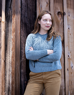 Worked seamlessly from the top down, the sweater features a classic crew neckline, long sleeves, and ribbed edges for a polished finish. Arad offers both visual drama in the yoke and easy wearability in the body, making it a versatile piece for everyday layering.