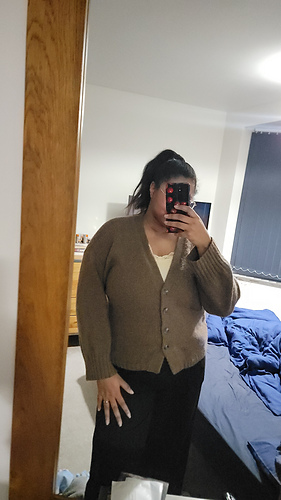 The Arlington cardigan is #SizeInclusive to a bust of 62”.