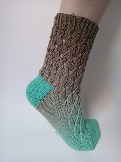 The stitch pattern is quick to memorize and works just as well in solid or variegated yarns, letting the yarn do its thing. Available in both top-down and toe-up, these are the kind of socks you can knit on autopilot and still end up with something that feels thoughtful and finished.