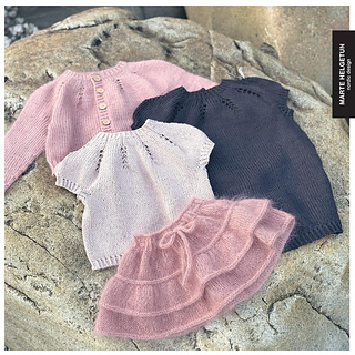 Arwens sommertopp er som hentet ut av et sommereventyr. Den strikkes ovenfra og ned, og hullmønsteret over bærestykket gir form og fine detaljer. En liten knapp i nakken gjør den enkel å ta av og på – perfekt for små alver på varme sommerdager.