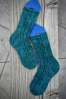 I used almost all of my two skeins, so if you intend to add height or length you might want to have a third skein handy. Socks as written are 7 inches high before heel flap, and the foot is 9.25 inches long.