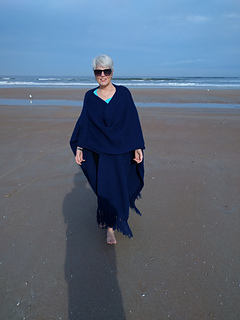 Finished Size 53” wide and 38.25” long from shoulder to hem. Ruana shown on model with 36” bust.