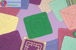 The AUGUST crochet square pattern is written in standard US terms for English-speaking users. Graph chart includes.