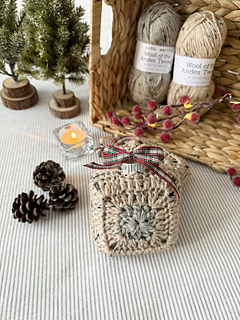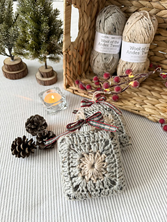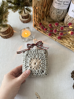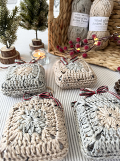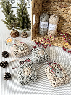 In total you will need (139yds/63g) of any worsted weight yarn to complete a package of 4 square ornaments.