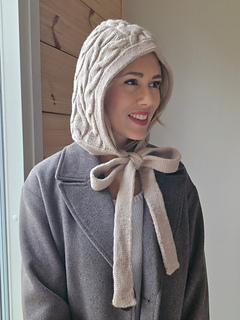 Aurora -balaclava on tyylikäs ja naisellinen palmikkoneulehuppu, joka pitää sinut lämpimänä ja tuo samalla ripauksen modernia ilmettä tyyliisi. Reilunkokoisen hupun alla hiukset pysyvät kauniina. Neulehupun pitkät nauhat saa solmittua suloiselle ja