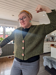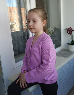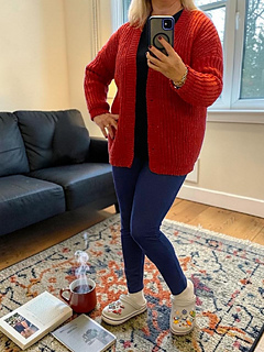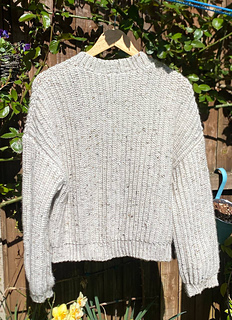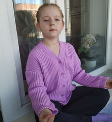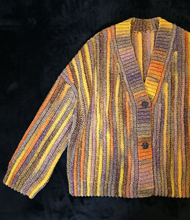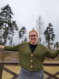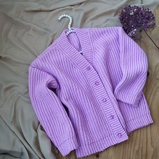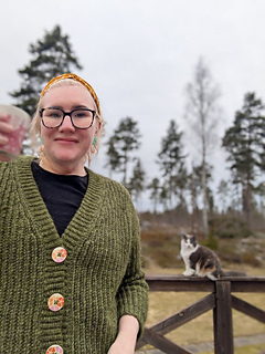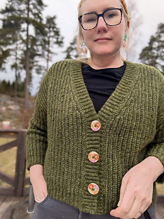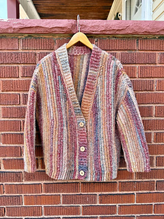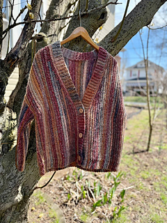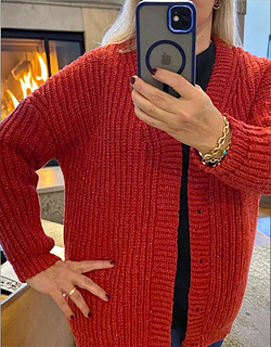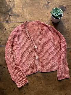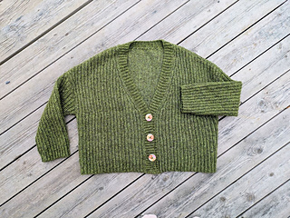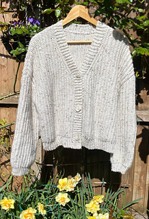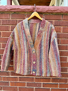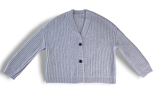 The Aurora Cardigan features a classic design with simple, clean lines. It is made in 6 parts: the back panel, two front panels, two sleeves sewn together with a tapestry needle, and a button band is attached as you go.