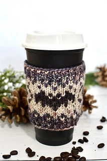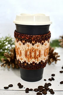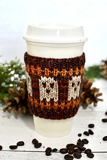 This autumn-themed cup cozy is the perfect addition to the aspiring low-waste, never-not-knitting, coffee fan!