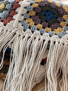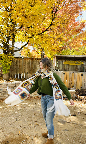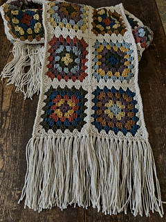 ’Autumn’ Scarf is created from basic Granny Squares, with a simple but beautiful joining stitch, and finished off with a long fringe, this scarf is so quick and easy to work up, you’ll find yourself making it over and over in your favorite color combinations!