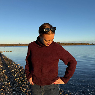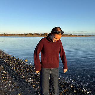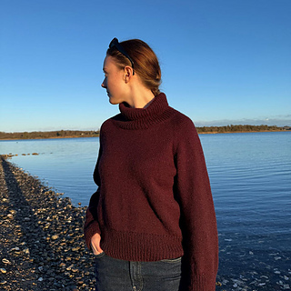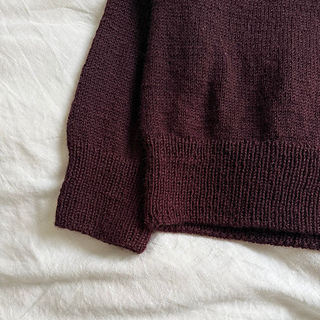 Den bordeaux Axel Sweater er strikket i Peer Gynt fra Sandnes Garn i farven Velvet fig 4682.