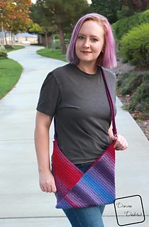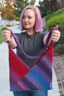 This fun bag is so simple! It’s all about the fold. Make all that lovely texture, pair it with some variegated yarn, and you’ll have a gorgeous piece of fabric to fold. It’s easy to customize and accessorize.
