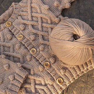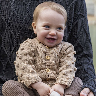 Merino Baby bobble and diamond baby cardigan pattern Create a unique garment for your baby’s layette with this round-necked, cardigan knitting pattern. Knitted in stockinette stitch with details such as bobbles, diamond stitch cables, and eyelets to create a classic and timeless look, perfect for experienced knitters. Use the soft Katia Merino Baby wool to knit a high-quality garment, with Total Easy Care treatment for machine washing and drying.
