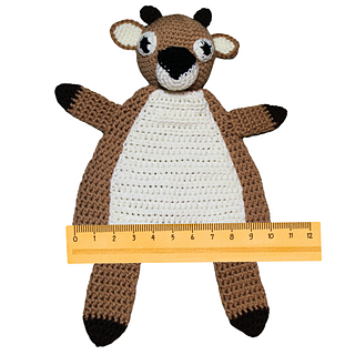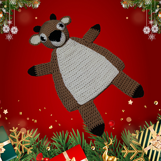 This adorable crochet pattern is easy to make using worsted weight yarn. Legs are crocheted on rather than sewn on for added strength. Belly and facial features are sewn on with a double row of stitches for durability. Add antler nubs for a Baby Reindeer Lovey.