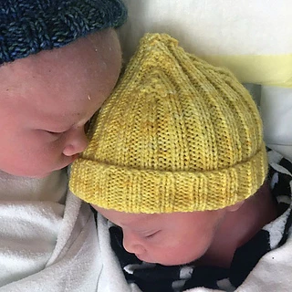 Getting a baby hat to fit well is a challenge because the size of babies’ heads defies prediction. When my doctor could give me zero guidance on how big my twin’s heads would be, I designed this hat to cover all my bases.