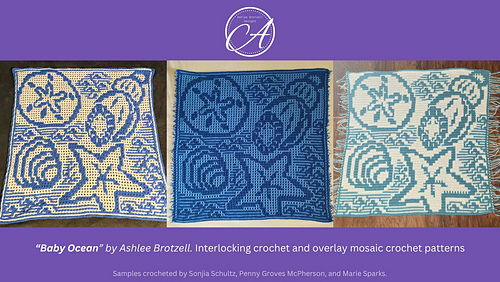 Samples crocheted by CynCityCrochets, Henriette Van Wyck, JLe512, Marie Sparks, Penny Groves McPherson, and Sonjia Schultz.