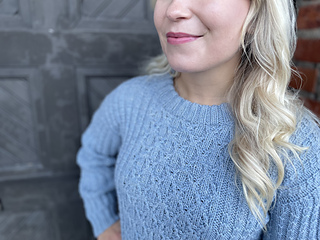 Baltic Breeze pullover is worked seamlessly from top down starting from the back panel. Back and front are worked flat until the underarm and then joined in the round. Stitches for the collar are picked up later so you can choose whether you want to add a full turtleneck or a crew neck. The pattern includes a chart as well as written instructions for the textured details.