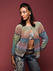 The cardigan is knitted in one piece from top-down. Cables accentuate the raglan lines.