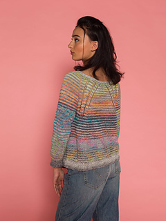 Die Jacke ist in einem Stück von oben nach unten gestrickt. Zöpfe betonen die Raglannähte.