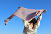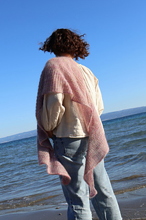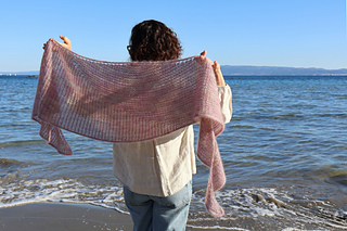 The model shawl was knitted using Haze Lace from Life in the Long Grass in the Cockleshell colorway with yarn held double.